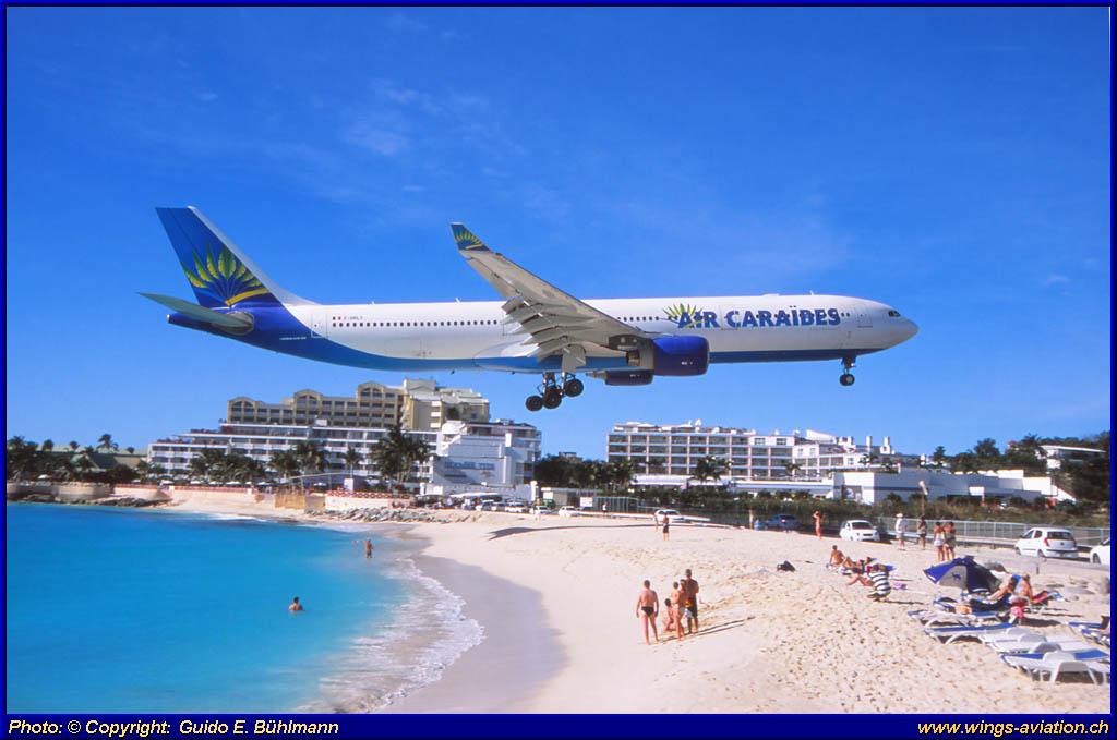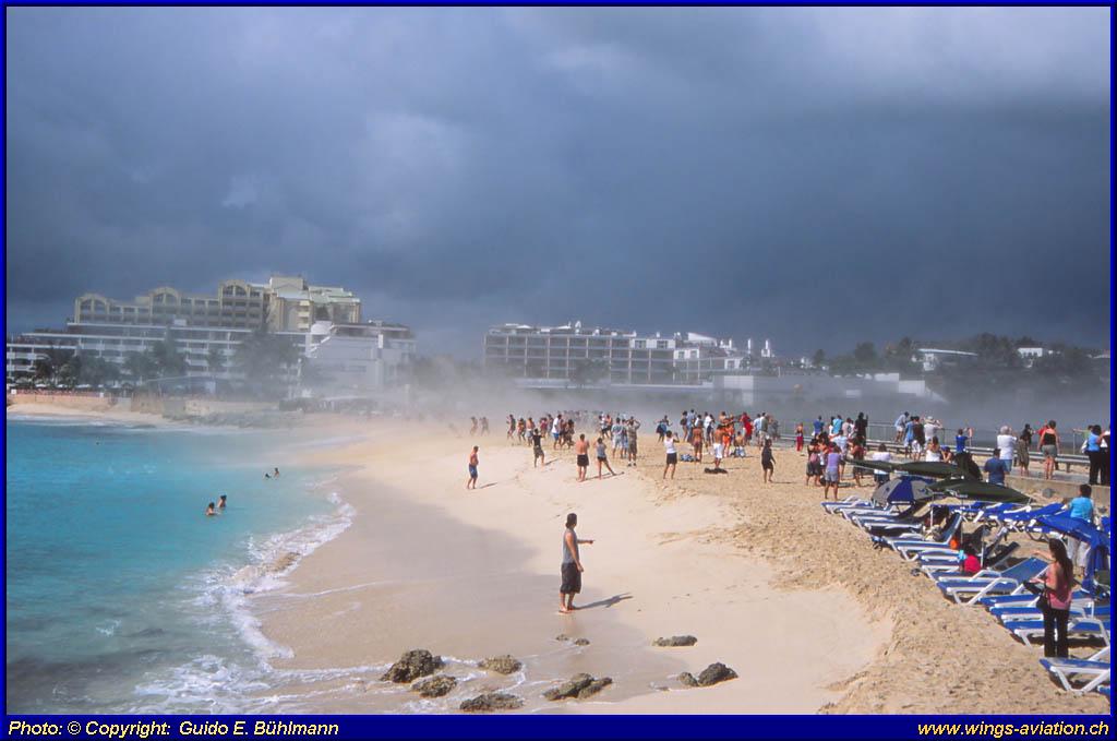and thousands of tourists arriving by plane to Sint Maarten/St. Martin. |