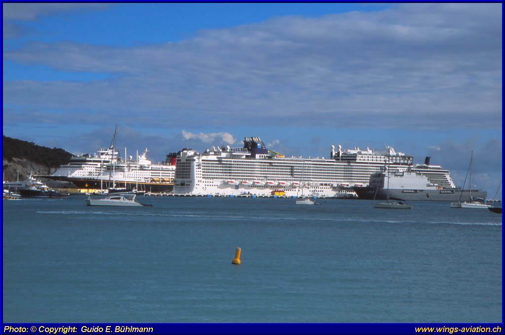will find up to ten large cruising ships in the harbor of Philipsburg