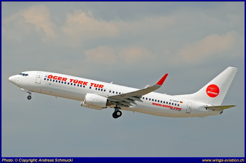 Boeing 737-8Q8/W, XL Airways Germany D-AXLF in Oeger Türk Tur-Livery (Picture courtesy Andreas Schmucki) |