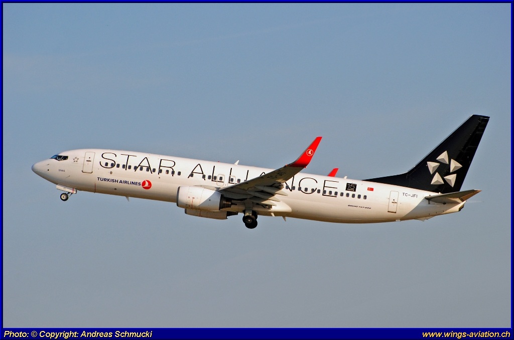 Boeing 737-8F2/W, Turkish Airlines "Star Alliance"-Livery with "15 Years"-Sticker TC-JFI (Picture courtesy Andreas Schmucki) |