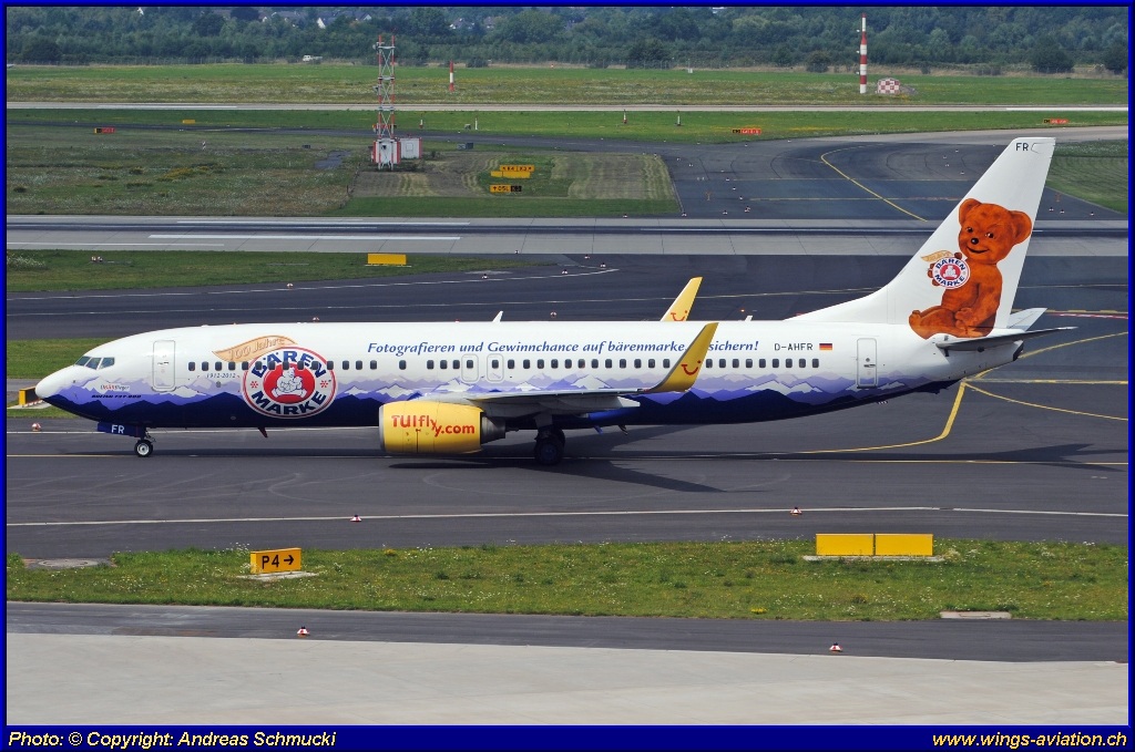 Boeing 737-8K5/W, Tuifly D-AHFR in spezial-Livery "100 Jahre 1912 - 2012 Bärenmarke" (Picture courtesy Andreas Schmucki) |
