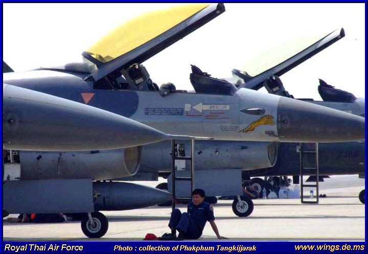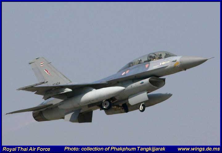 General Dynamics F-16B Falcon #10322 (Photo courtesy of Phakphum Tangkijjarak) General Dynamics F-16A Falcon (Photo courtesy of Phakphum Tangkijjarak) General Dynamics F-16A Falcon #10316 (Photo courtesy of Phakphum Tangkijjarak) General Dynamics F-16B Falcon #10302 (Photo courtesy of Phakphum Tangkijjarak)